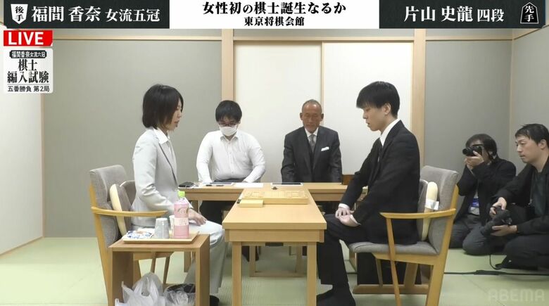 福間香奈女流五冠、注目の棋士編入試験第2局!黒星発進から巻き返しなるか 試験官・片山史龍四段と対局開始