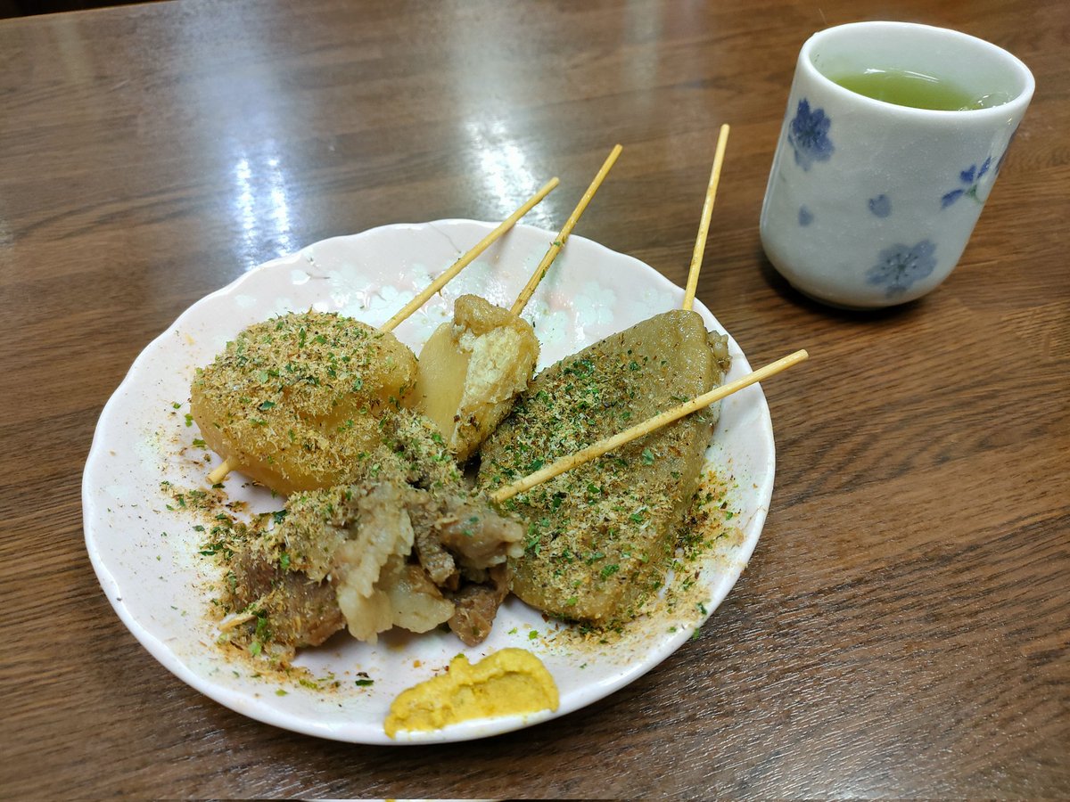 静岡市「浮月楼」でのA級順位戦最終局、大盤解説会などでお会いした皆様、ありがとうございました😊翌日は2年ぶりに静岡おでんの名店「おがわ」に。こちらのおでん🍢は控えめに言って美味しすぎます。静岡に行くときの楽しみの一つになっています✨ https://t.co/J7KBzsMjjx