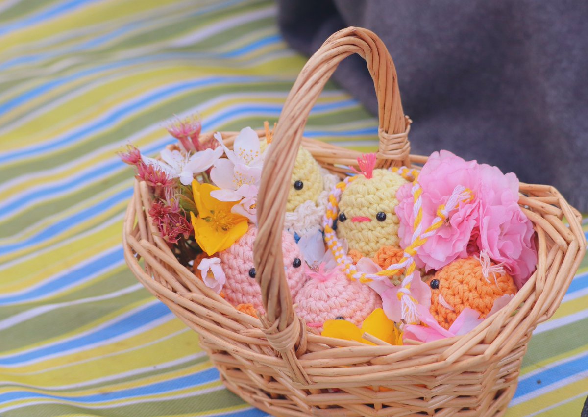 イースターが近いので卵に入ったひよこを量産して子どもたちにプレゼントしました!いつの間にか拾ったお花にギュウギュウに囲まれてて可愛かった🐣 https://t.co/kKRs1017Ue