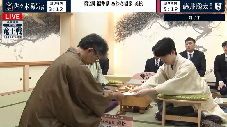 藤井聡太竜王VS佐々木勇気八段、注目の“あわら対局”再開 封じ手は「最短の勝ちを目指す一番強い手」/将棋・竜王戦第2局